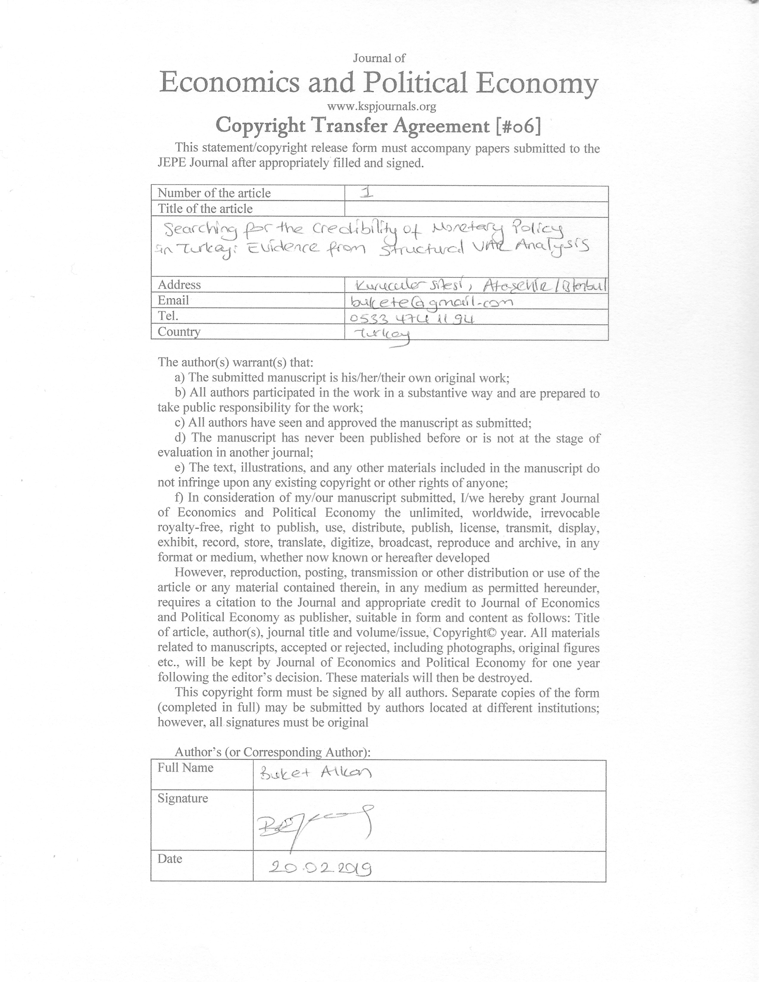 Çiçek, S., Akar, C., & Yucel, E. (2011). Türkiye’de enflasyon beklentilerinin çapalanması ve güvenilirlik, Iktisat, Isletme ve Finans, 26(304), 37-55.