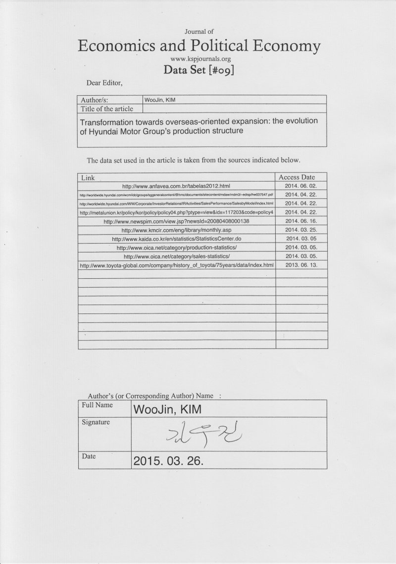 Jung, M.K. (2011). The global production strategy of the world’s leading automakers(in Korean).(KMWU Research Center Working paper).Seoul, Korea: Korean Metal Workers' UnionResearch Center. Retrieved June 16, 2014, fromhttp://metalunion.kr/policy/kor/policy/policy04.php?ptype=view&idx=117203&code=policy4
