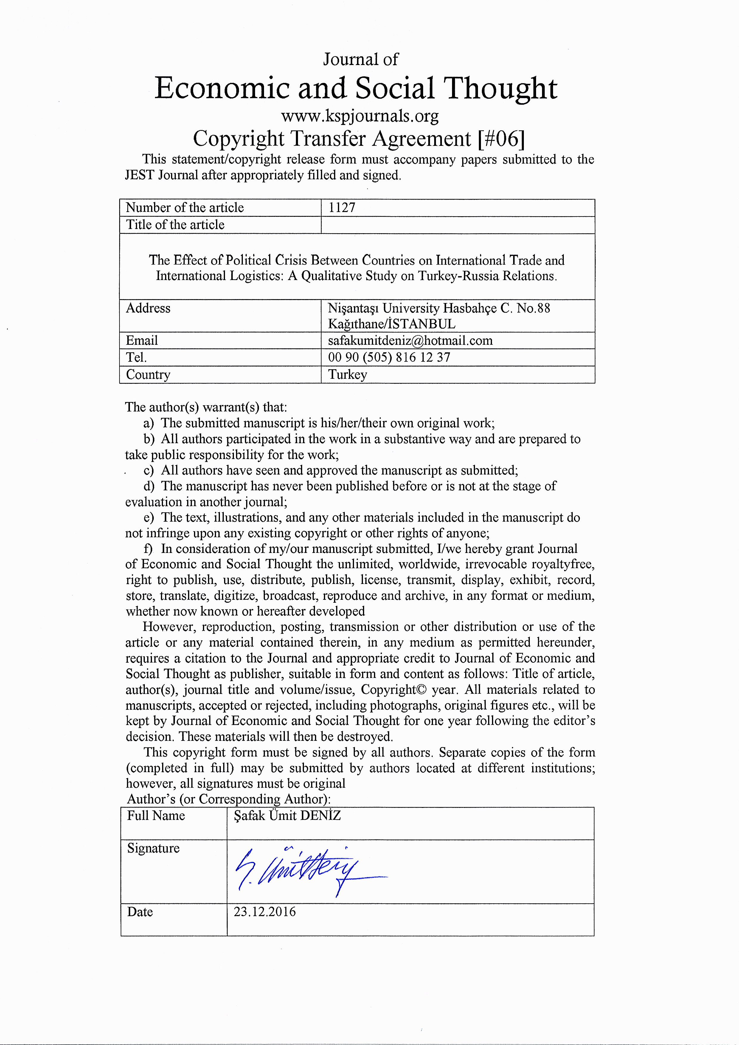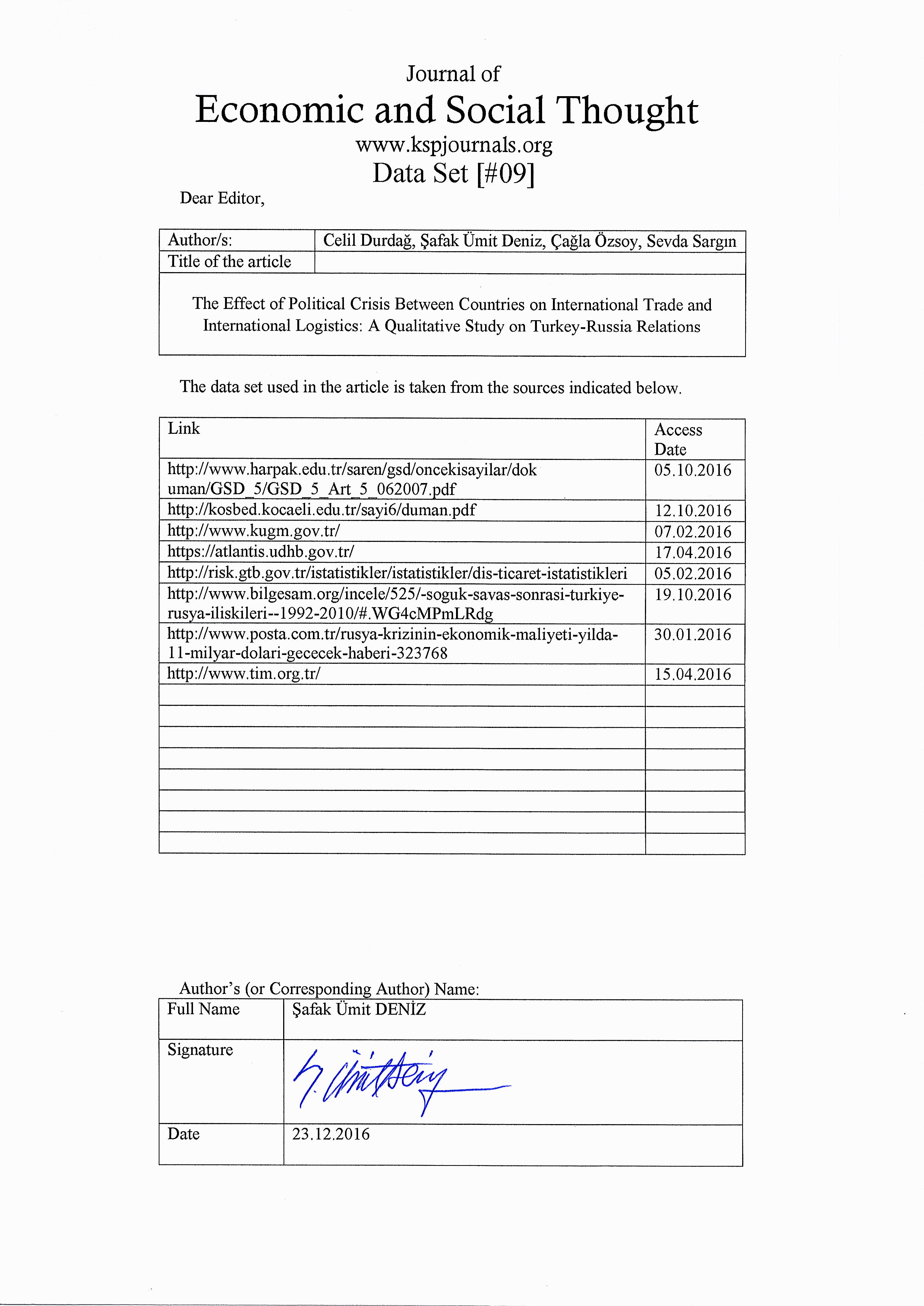 Deniz, Ş.Ü., & Durdağ, C. (2014). A qualitative study about the perceptions of customers toward the carriage of shopping materials by logistics firm, 12th International Logistics and Supply Chain Congress, İstanbul.