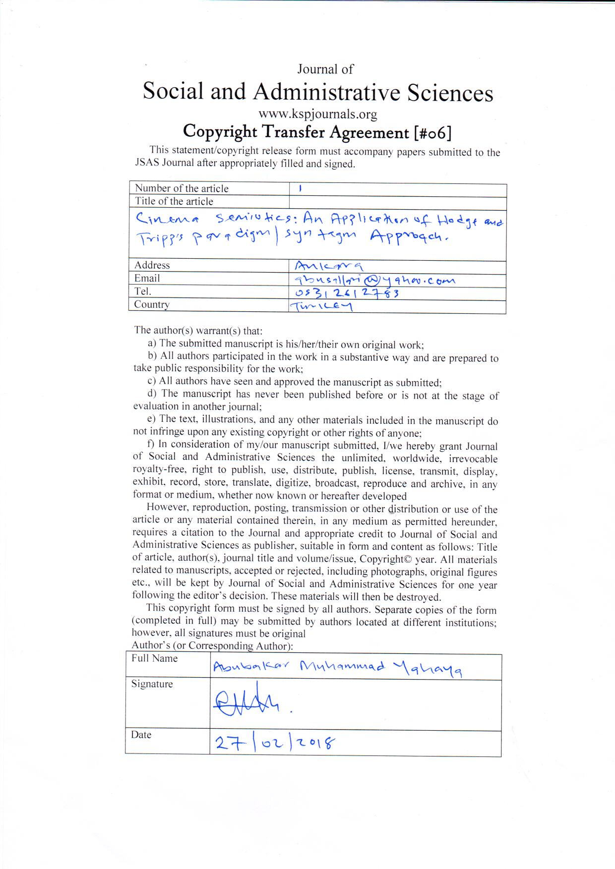 Keywords. Cinema, Semiotics, Syntagm, Paradigm, Film, Kanywood, Nollywood.